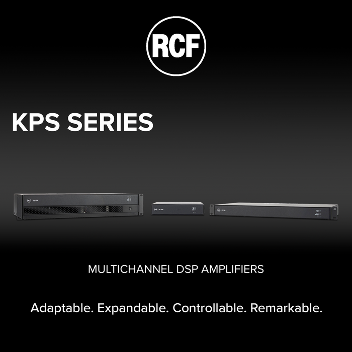RCF’s KPS Series multichannel DSP amplifiers are designed for fixed installation, with onboard DSP, flexible routing, optional Dante and RCF speaker presets. Available in 2, 4 and 8-channel models, in 160W or 800W per channel variants, supporting low impedance and 100V line systems. Configured via RDSpace.